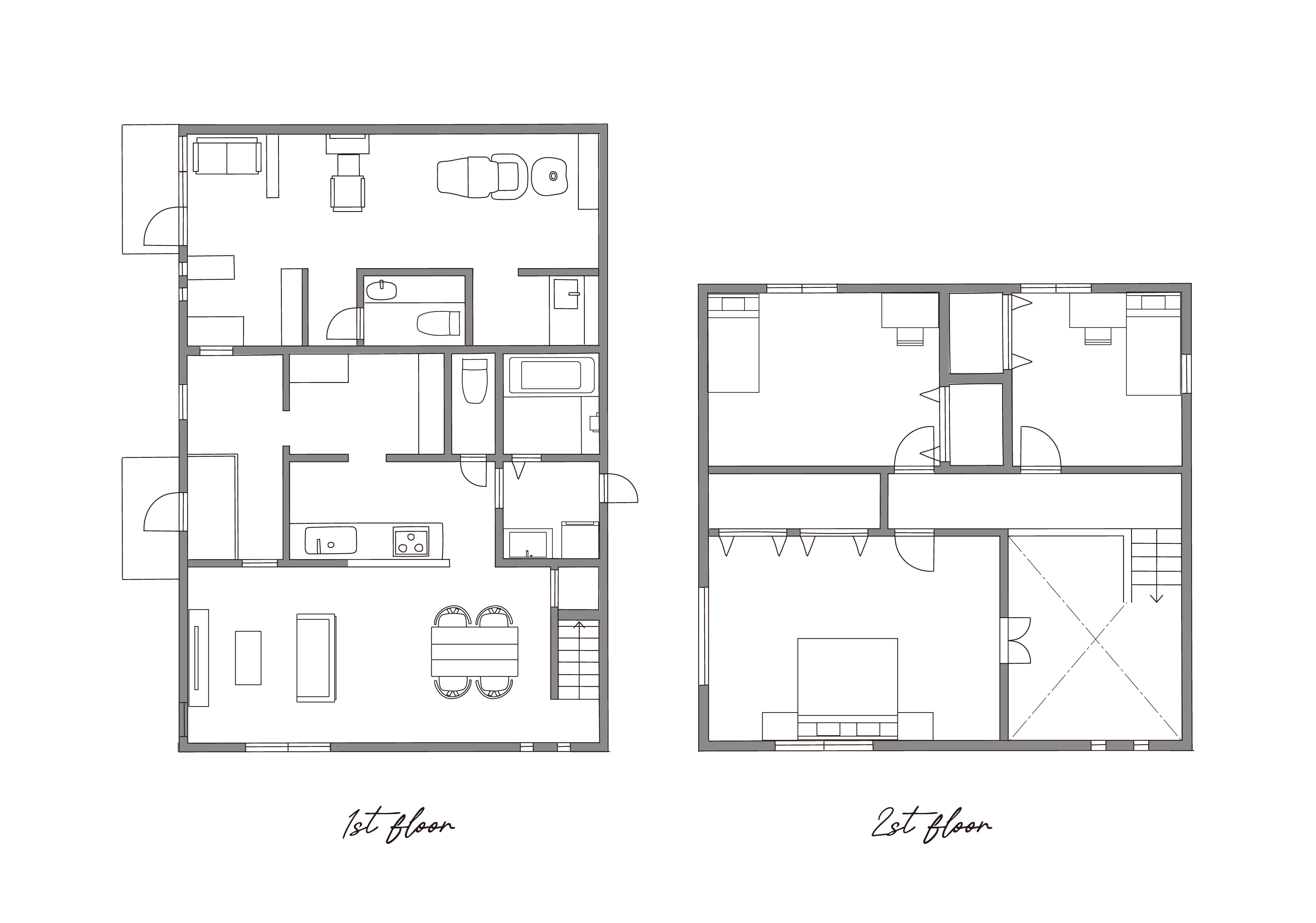 解体後の状況により基本の間取りなどにいくつかの決まりが出てくる場合がありますが、部屋の配置や動線など自由度の高い間取りやデザインが可能です。 -
