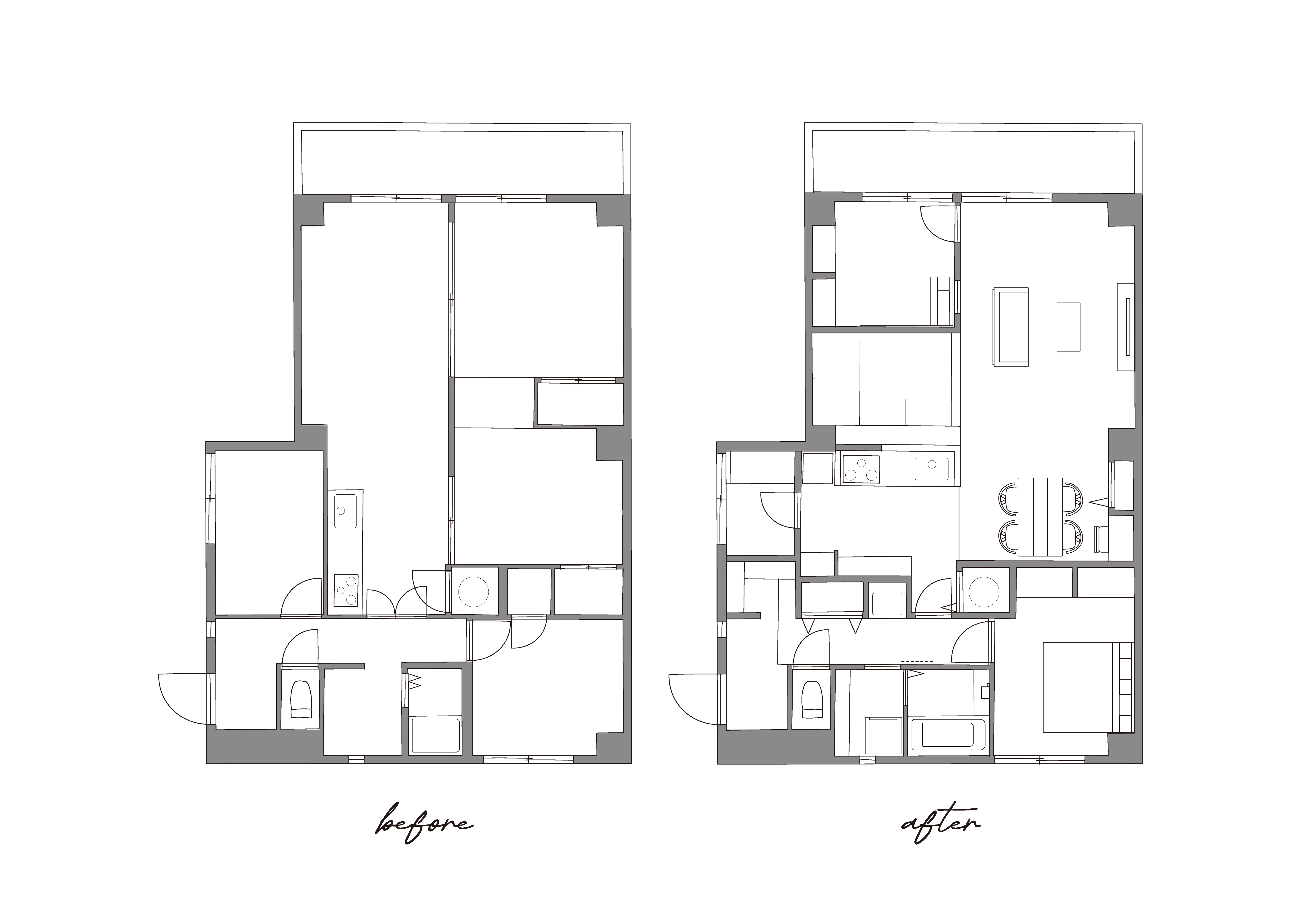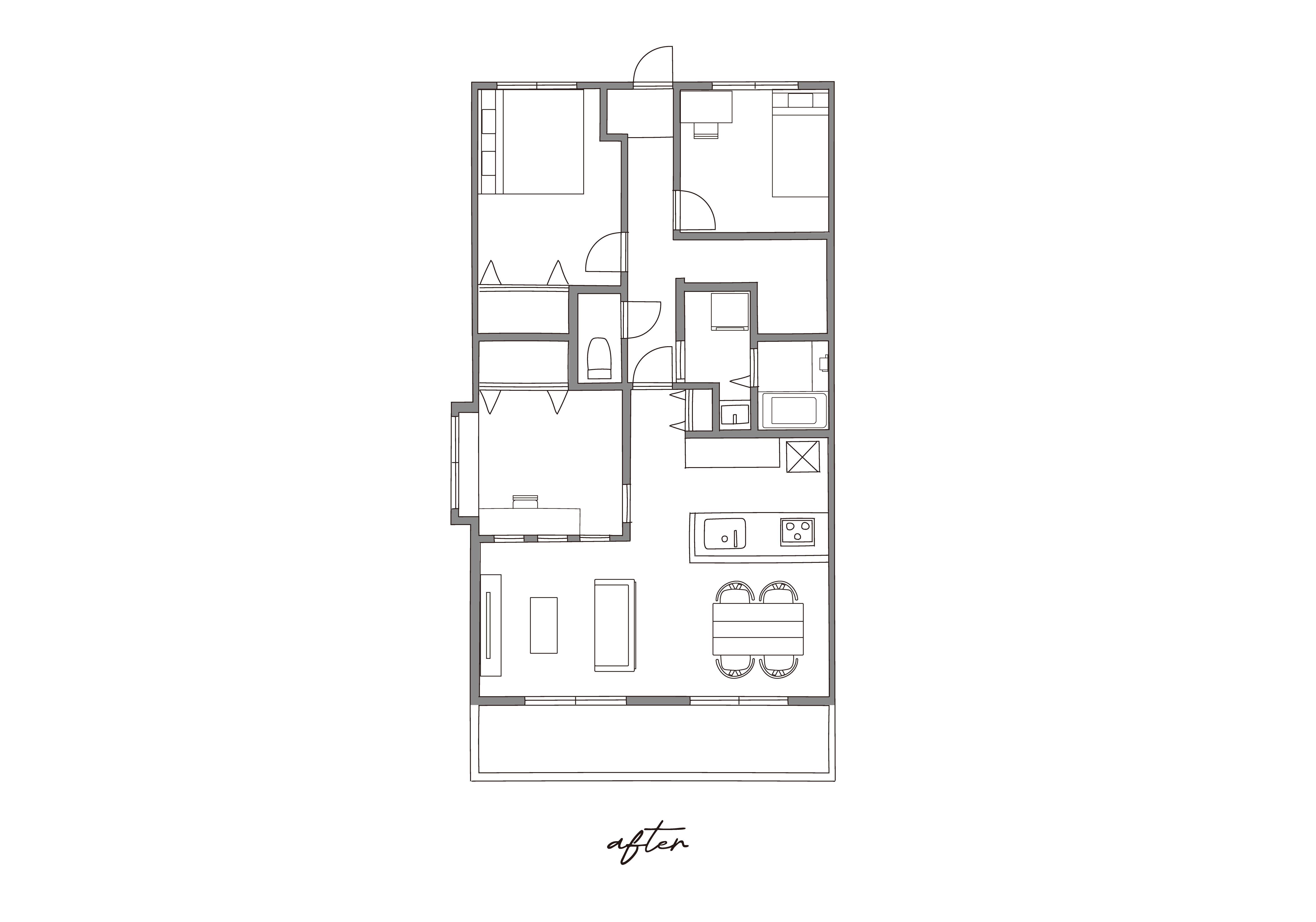 既存の間取りを解体し、まっさら(構造躯体のみの状態)から新たにあなただけのプランニングをしていきます。